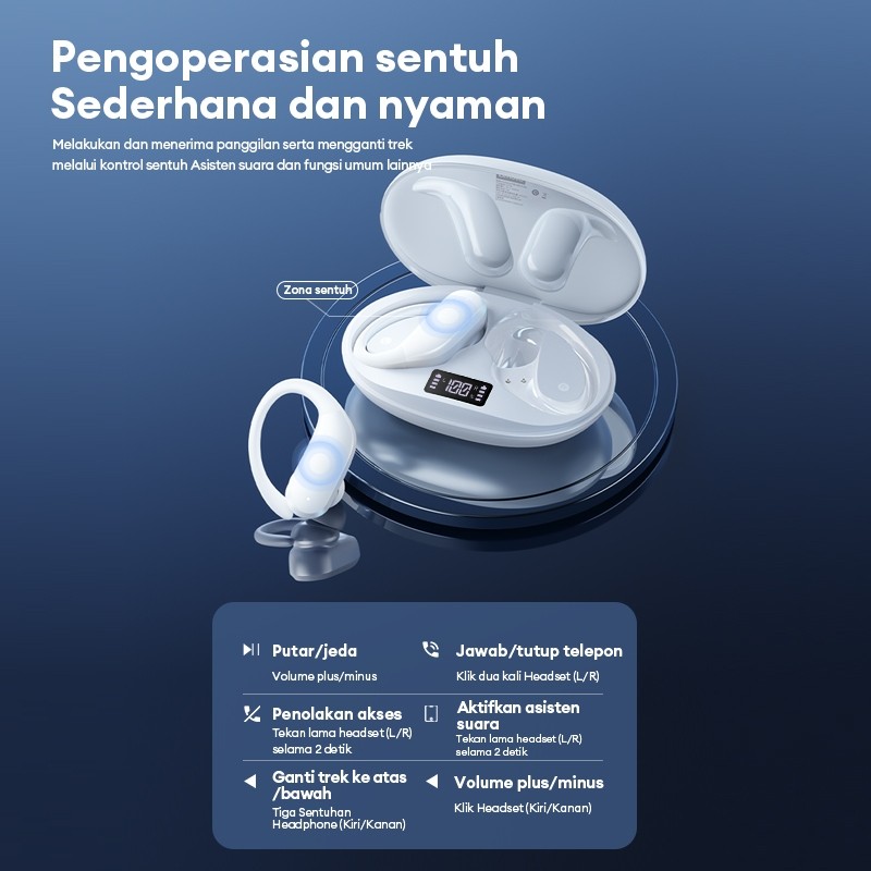 THINKPLUS LENOVO XT55 Headset Bluetooth Konduksi Tulang, TWS Nirkabel, Suara HiFi Panorama, Nyaman untuk Olahraga & Lari