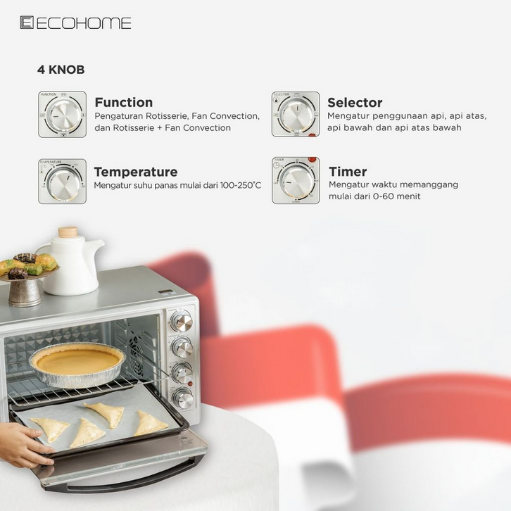 Oven Listrik Best Seller Ecohome Oven Listrik Low Watt Platinum Eop-888 - Garansi Resmi Low Watt Berkualitas