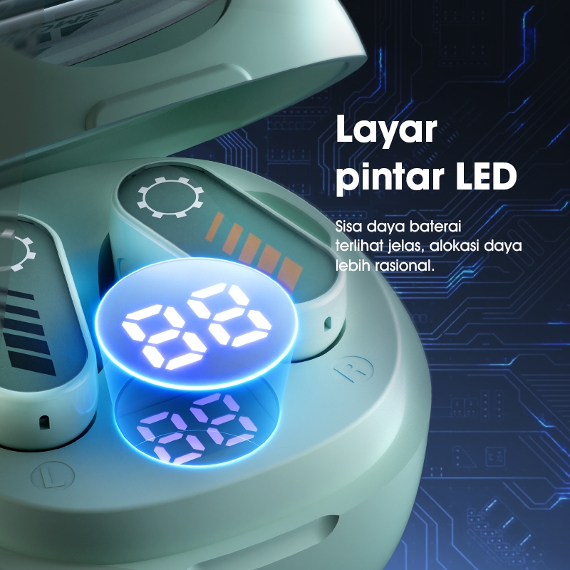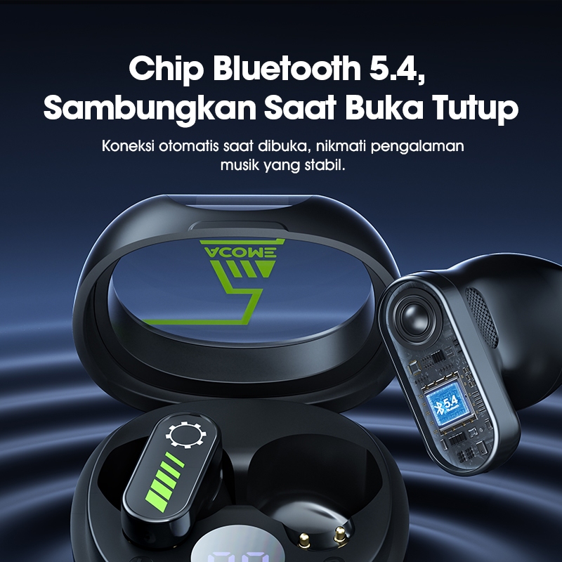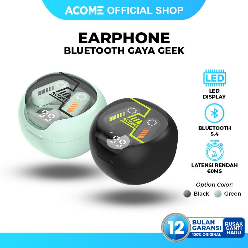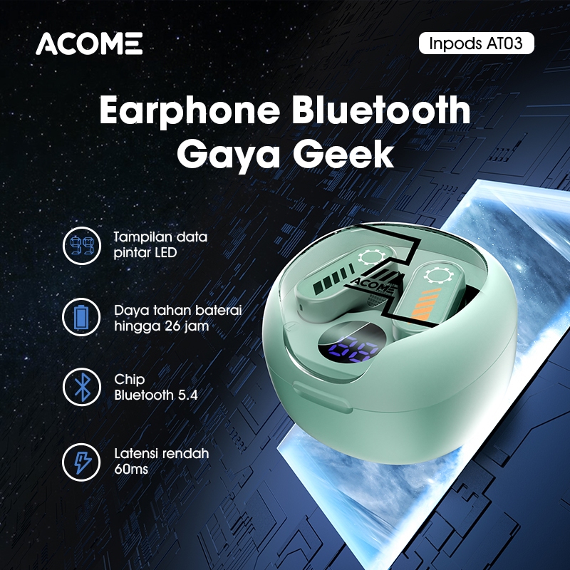 ACOME Headset Earphone TWS Bluetooth 5.4 Tampilan Layar Pintar LED Latensi Rendah 60ms Gaya Geek In AT03 Original - Gara