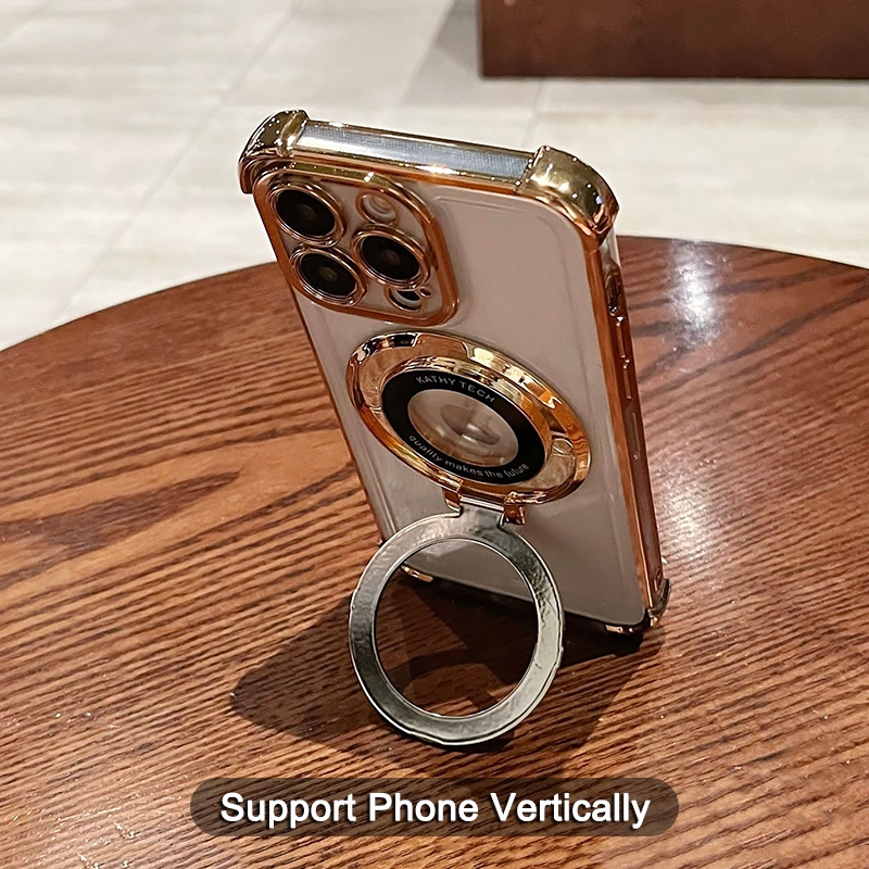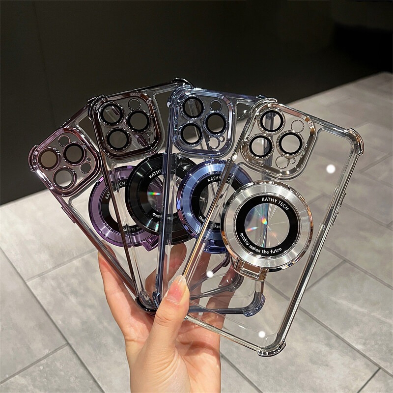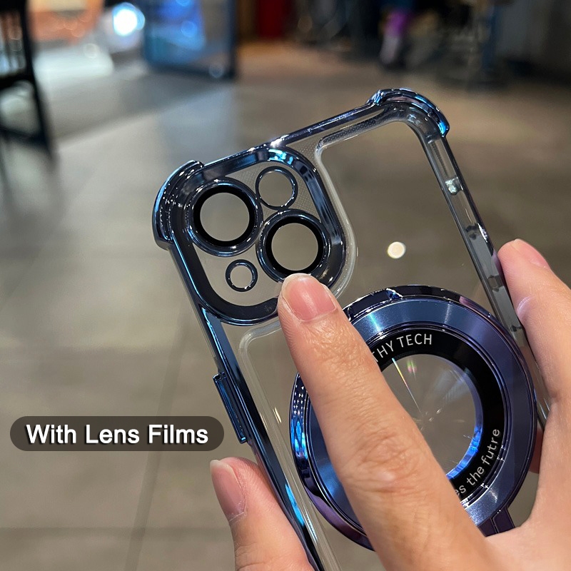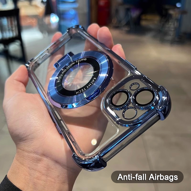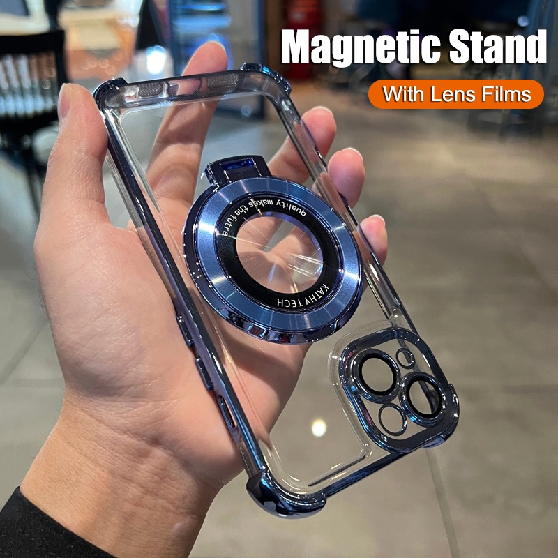 Case Ip CrashStar With Lens Films MagSafe Magnetic Stand Airbag Anti-fall Plating Transparent Hard Phone Case For iPhone