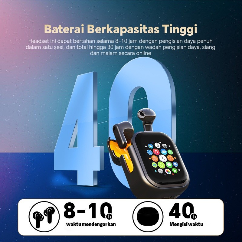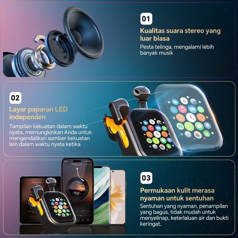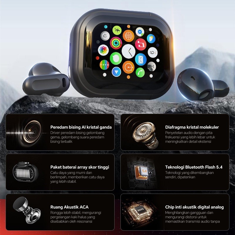 Manu AI Smart Wireless Bluetooth Headset V5.4 TWS Noise Reduction Headphone LED Full Color Touch Screen Earphones Suara