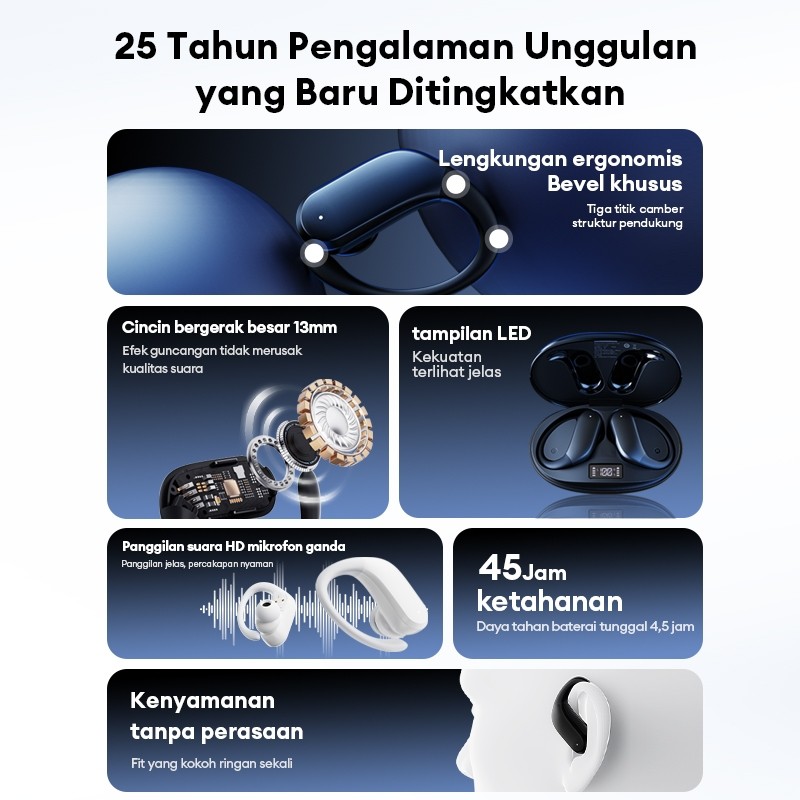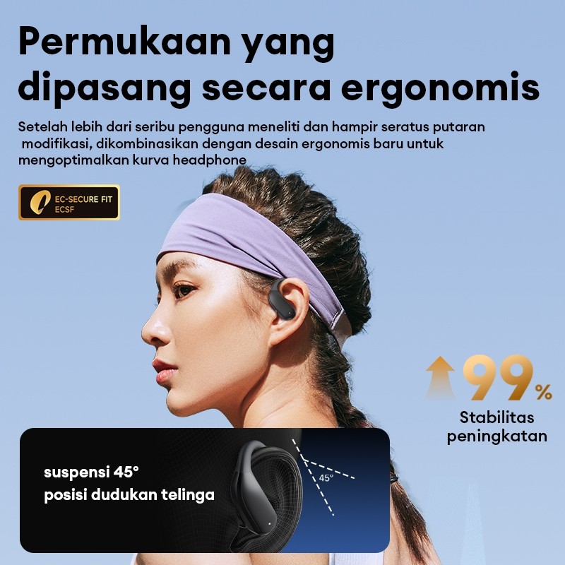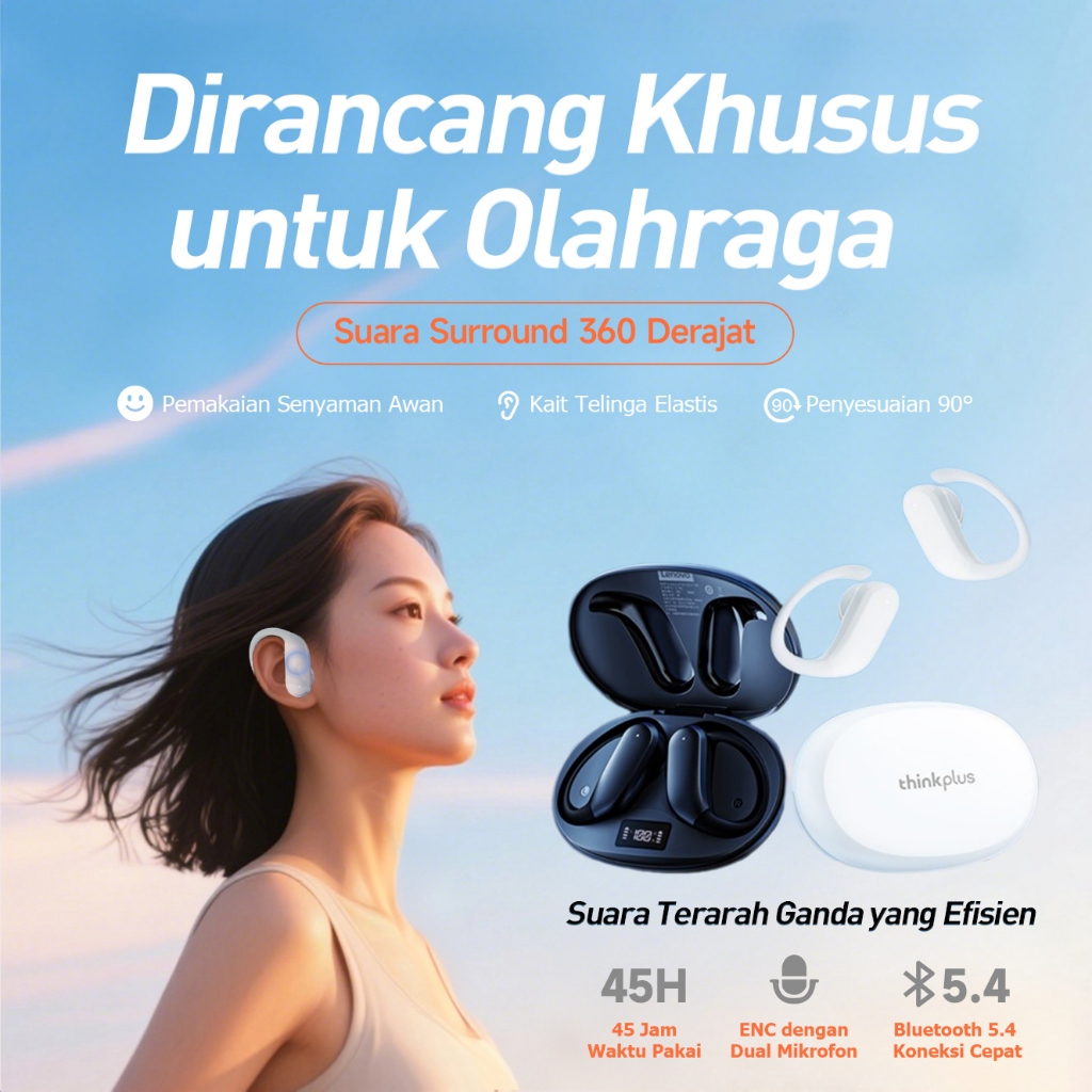 THINKPLUS LENOVO XT55 Headset Bluetooth Konduksi Tulang, TWS Nirkabel, Suara HiFi Panorama, Nyaman untuk Olahraga & Lari