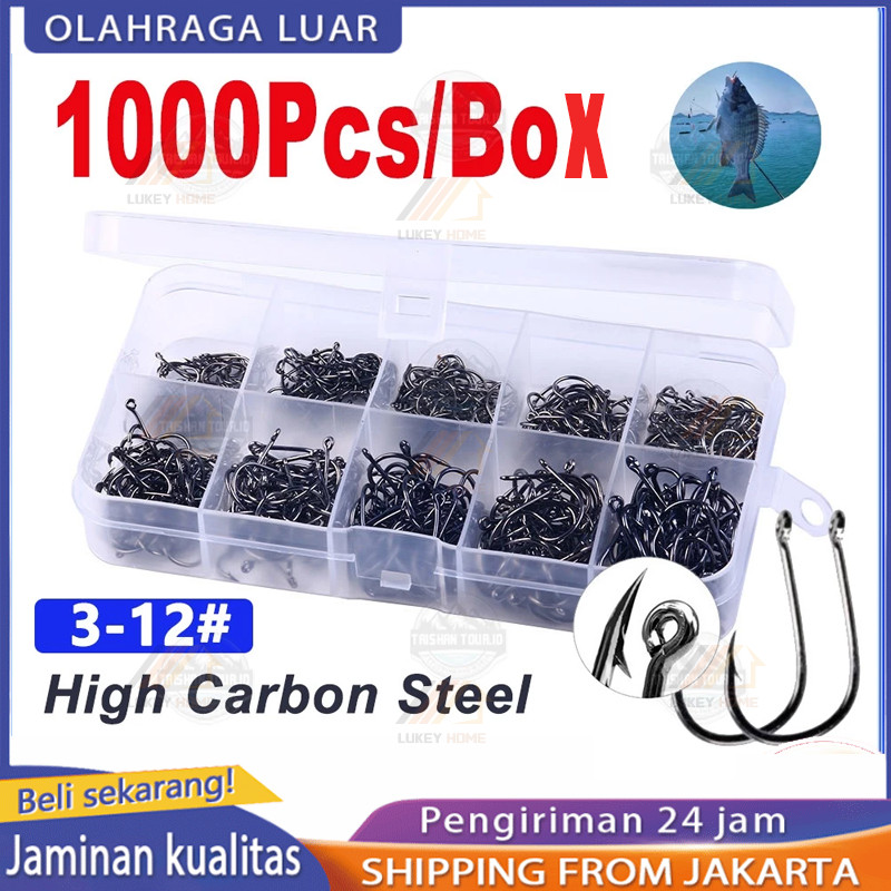 Set 1000 Pcs Kail Pancing Aneka Ukuran Bahan Baja Karbon Dengan Tali Pengait Kail Pancing Swan Akita Kitsune Kail Otomat