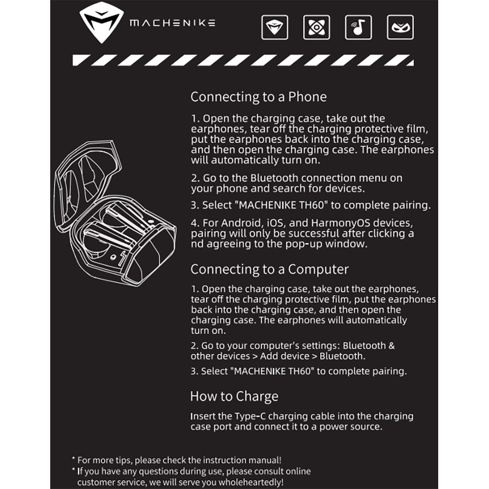 Machenike TH60 Bluetooth 5.4 Earphone Nirkabel TWS In-Ear Earbud 4 Mikrofon ENC Panggilan Pengurangan Kebisingan 0.04S L