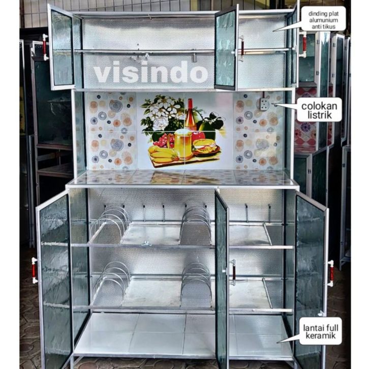 AIDACOLLECTION RAK DAPUR RAK PIRING ALUMUNIUM KERAMIK 3 PINTU RATA BAWAH KERAMIK RAK GELAS RAK PANCI RAK SERBAGUNA