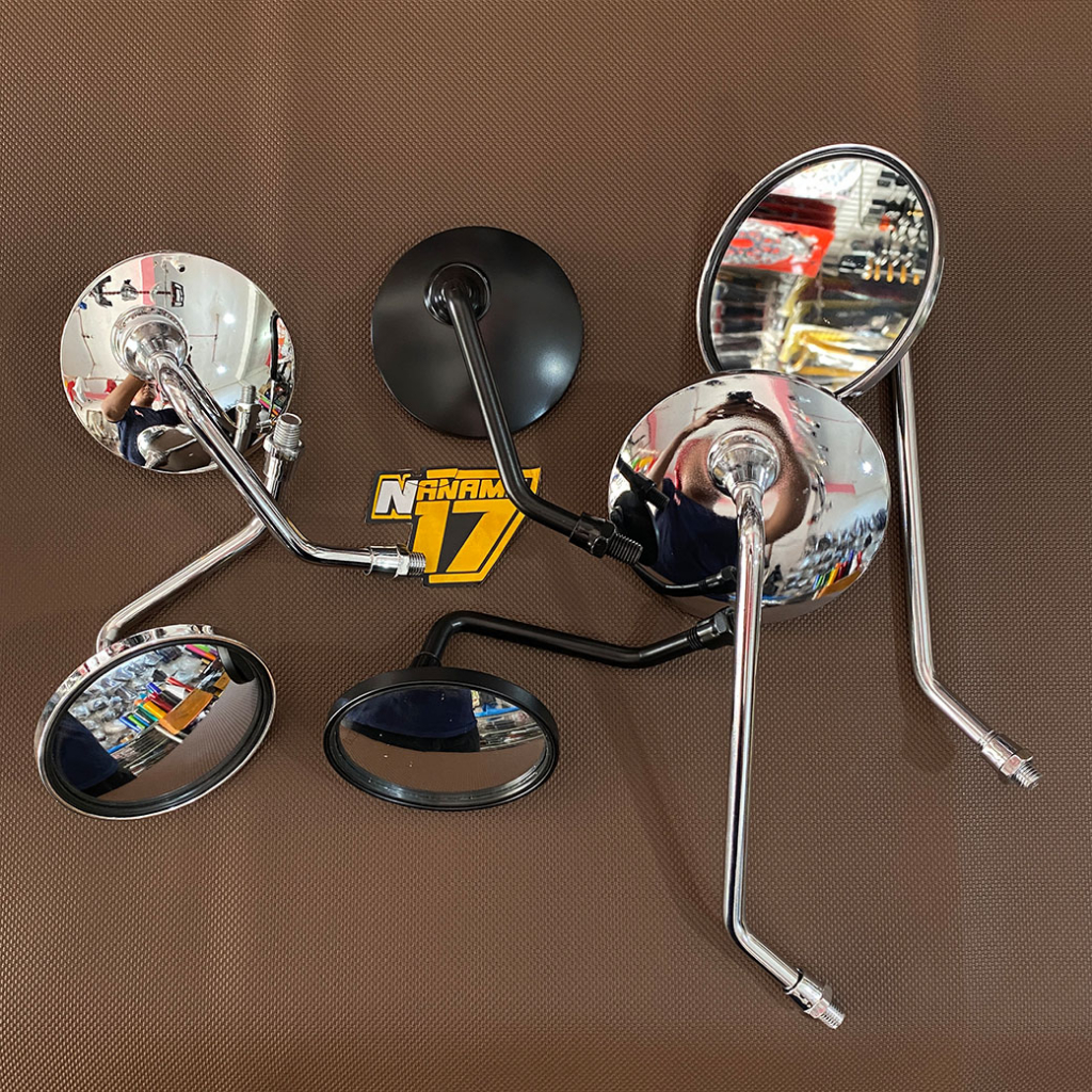 KACA SPION CLASSIC BULAT CHROME BESI TANGKAI PENDEK HONDA DAN YMAHA HIGH QUALITY