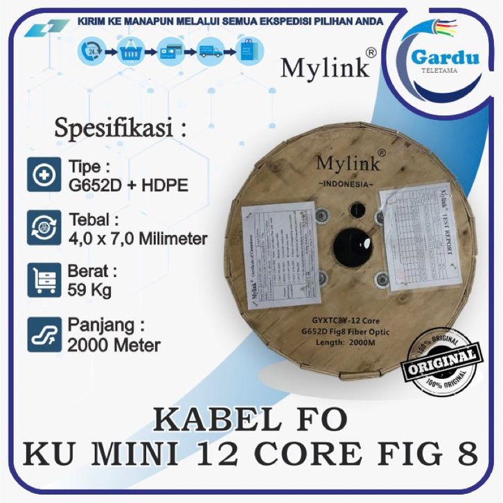 Kabel FO KU Mini 12 Core Fig 8 JellyTube Merk MyLink Panjang 2000 Meter