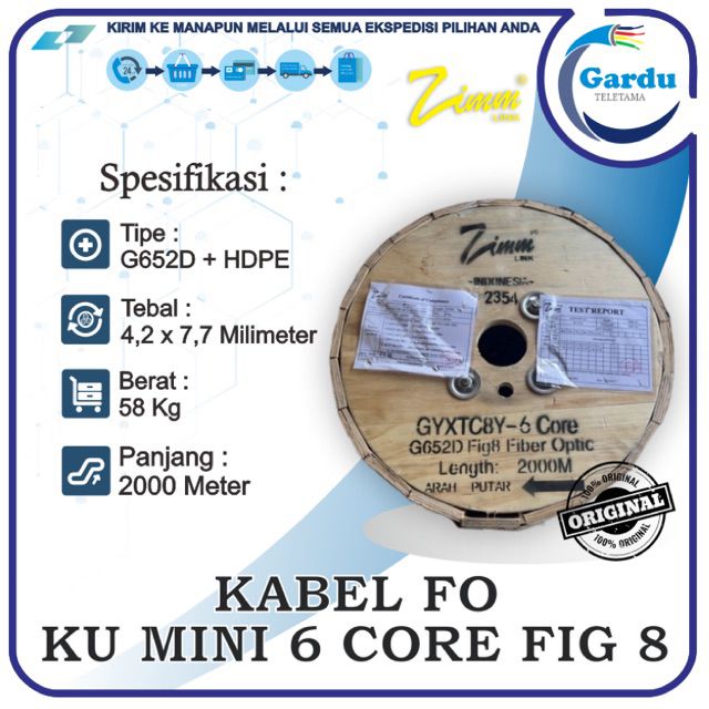 Kabel FO KU Mini 6 Core Fig 8 JellyTube Merk Zimmlink Panjang 2000M