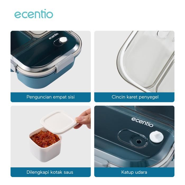 ecentio kotak makan 1.1L lunch box&tas bekal set anti bocor BPA free