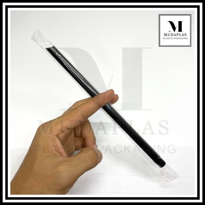 Sedotan Bubble Boba 12mm x 21cm Runcing Steril Higenis Bungkus Plastik - Hitam