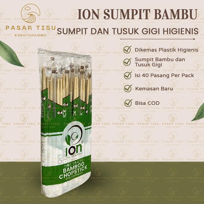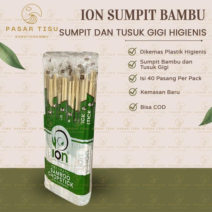 Sumpit Bambu / Sumpit Kayu Merk ION isi 40 pasang termasuk Tusuk Gigi Bungkus Plastik