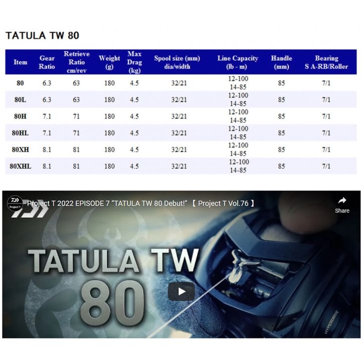 Daiwa Tatula TW 80 Baitcasting Reel Model 2022