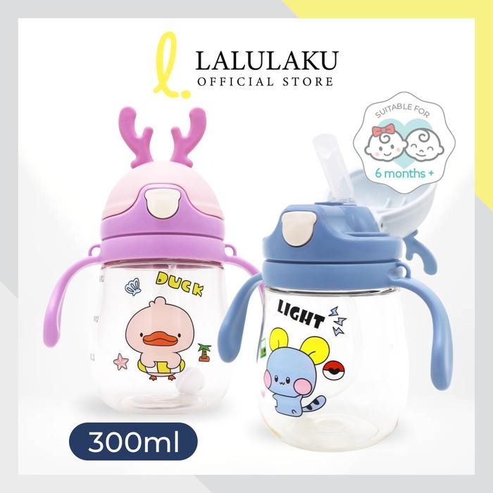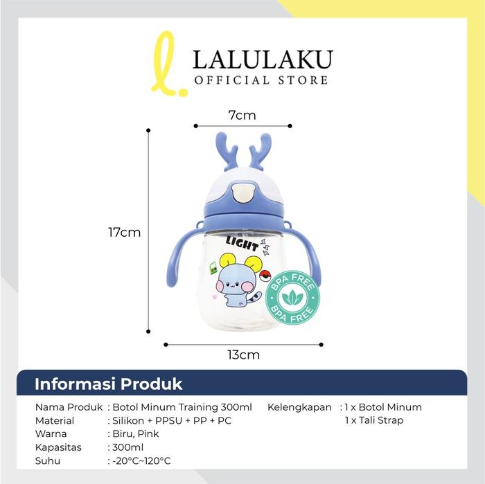 Botol Minum Bayi Training Cup 300ml Gelas Minum Anak dengan Sedotan - BIRU