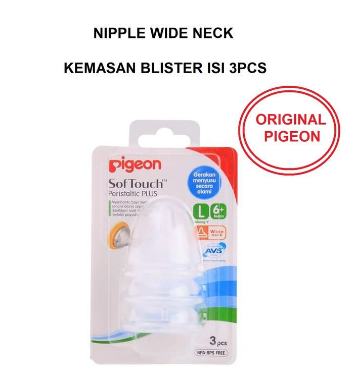 Pigeon Nipple Peristaltic PLUS Wide Neck Soft Touch isi 3 L | Dot Bayi - SofTouch isi 3