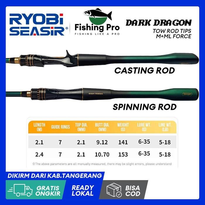 Seasir Dark Dragon Joran Pancing, joran Umpan Casting Putar Joran Pancing Serat Karbon Pegangan Satu Bagian