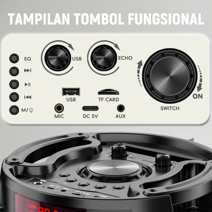 MAIKET Speaker Bluetooth Besar Karaoke 6 Inch.2 Super Bass 30W Subwoofer Suara 3D surround RGB Light