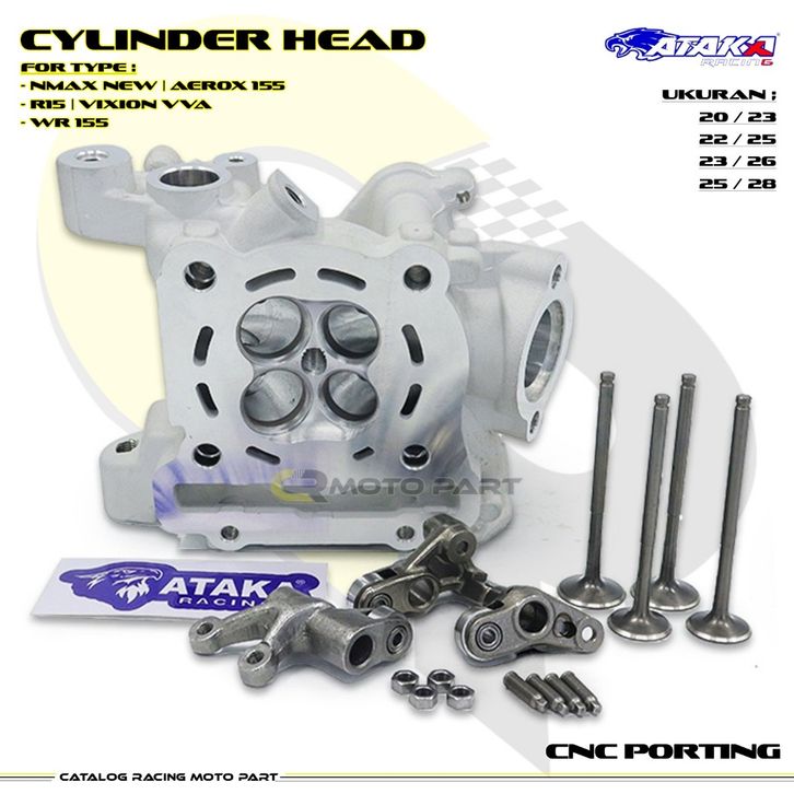 ATAKA RACING Super Head Porting CNC Nmax New // Aerox 155 // R15 V3 V4 // WR 155 // Vixion Ukuran 23/20 25/22