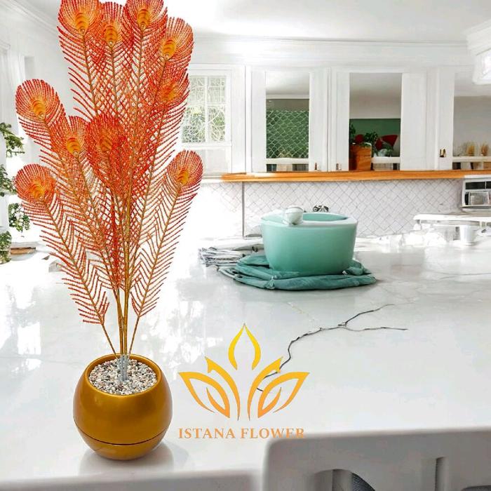 BUNGA HIAS MEJA MERAK 901d SATU SET POT BOLA 901d BISA (c06) - merak orens