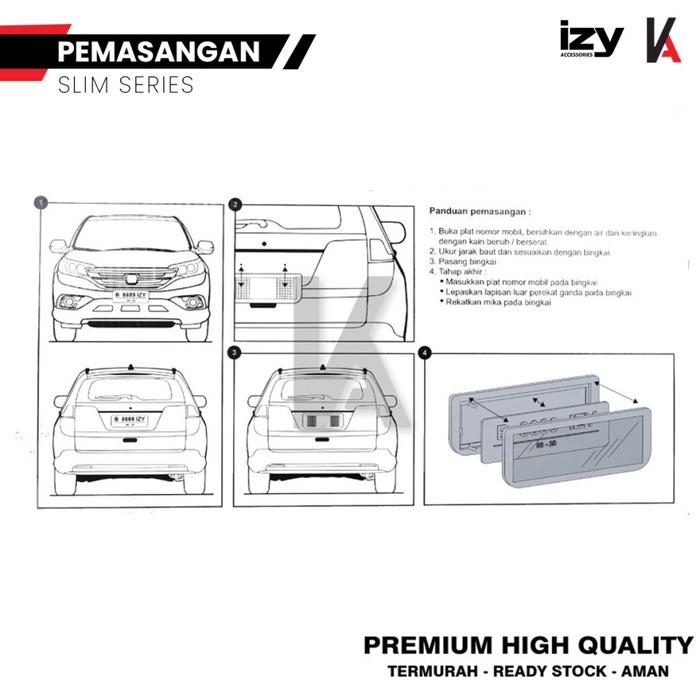 IZY Cover / Dudukan / Tempat / Frame / Breket / Bingkai / Rumah / Tatakan Plat Nomor Mobil Model Slim Series - HITAM