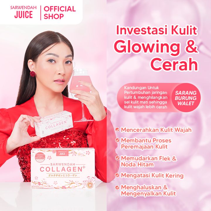 Sarwendah Juice Collagen 20 Sachet Sarwendah Collagen Rasa Strawberry & Apel 1 Box - 20 Sachet