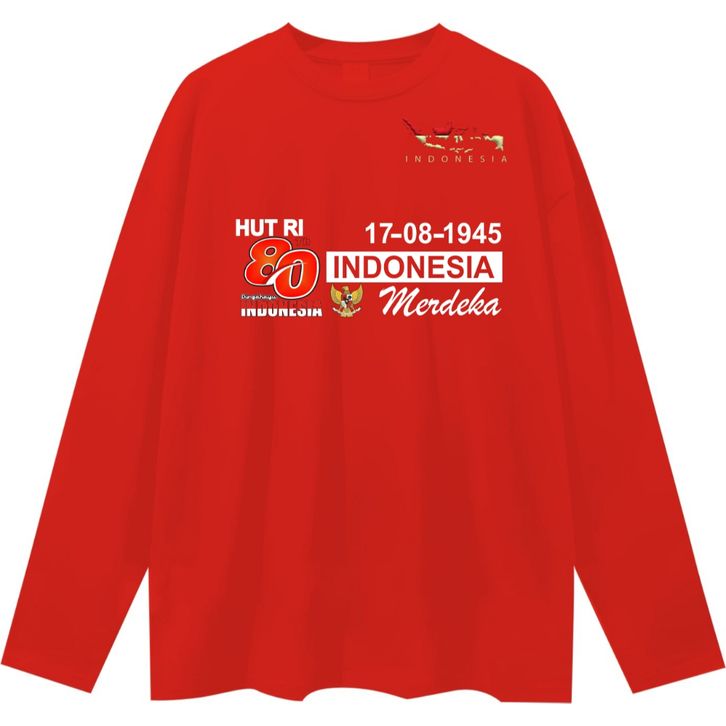 BAJU KAOS 17 AGUSTUS DEWASA JUMBO Lengan Panjang Kaos Hut 80 RI 17 agustus 1945 kemerdekaan RI KAOS HITS KAOS MURAH