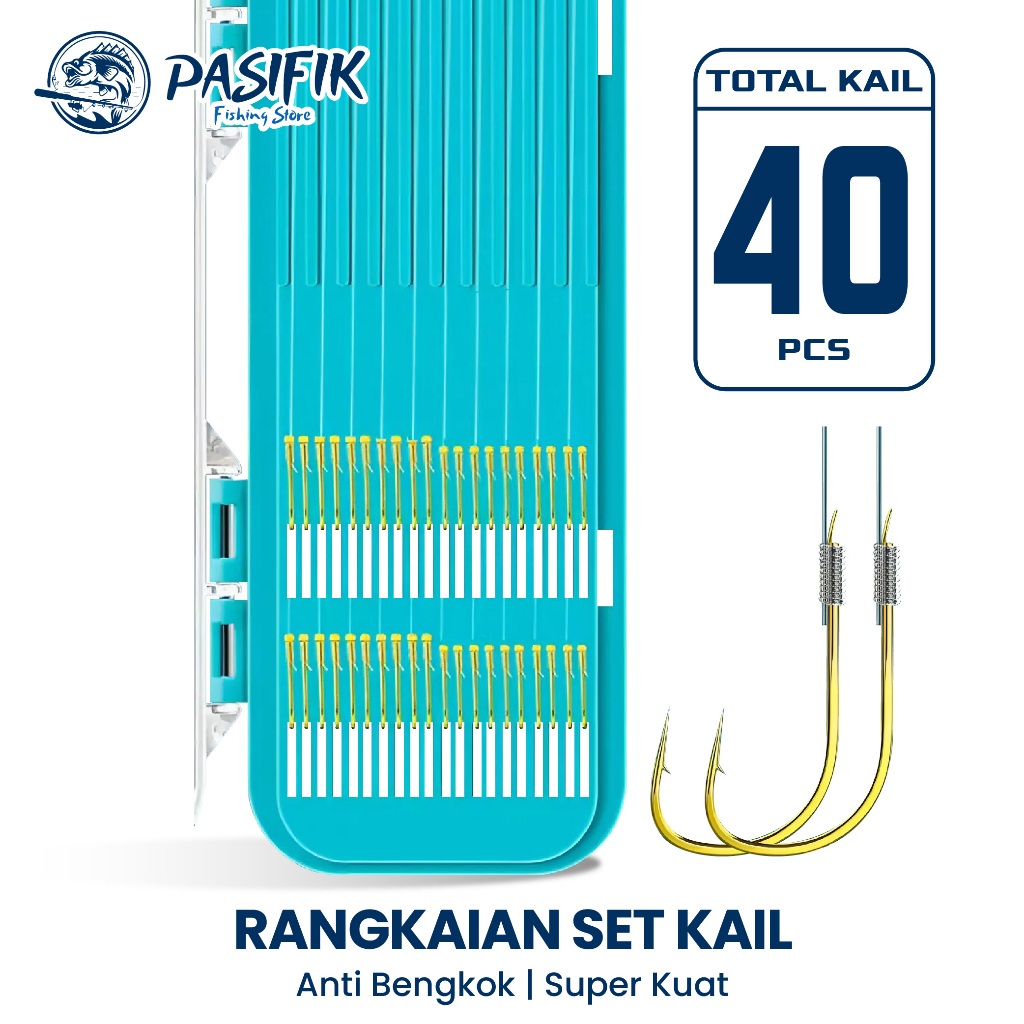 1Set Rangkaian Pancing 2 Mata Kail Isi 10 Rangkai Set + Box Penyimpanan Siap Pakai