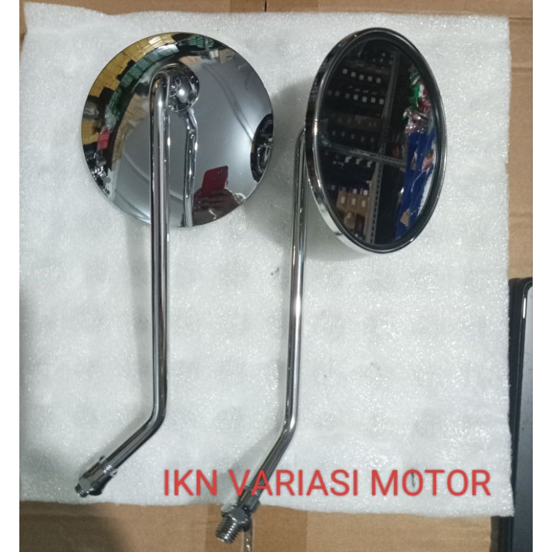 Spion Bulat Untuk Motor Honda Stylo, Scoopy Esp Fi, genio, c70, cb fazzio, beat fi dll model clasic tangkai silver panja