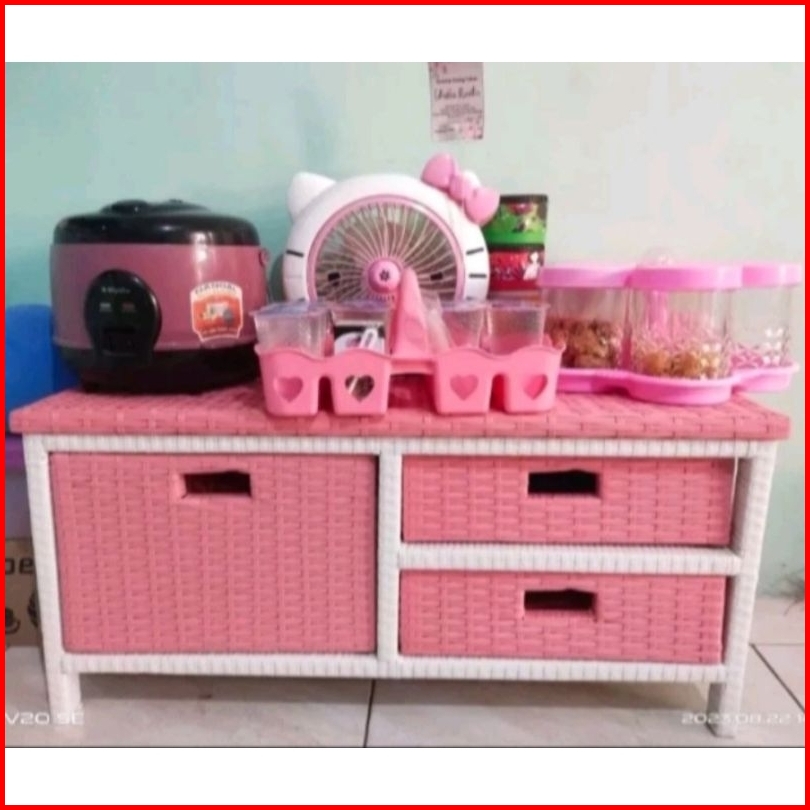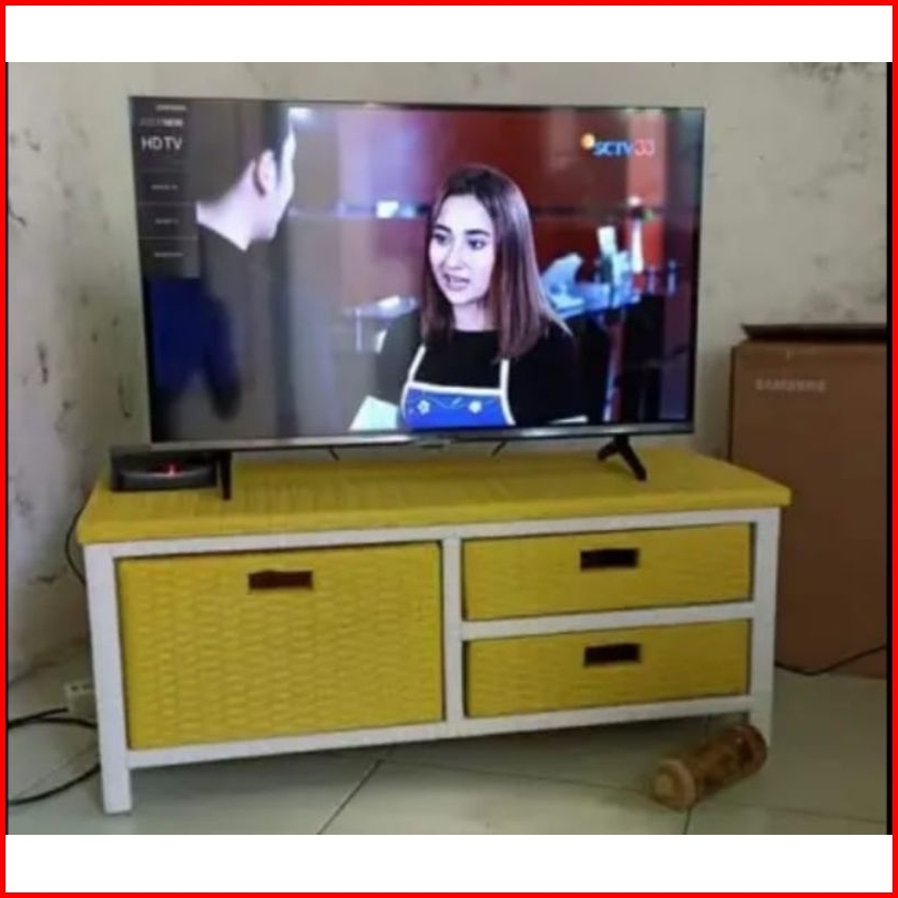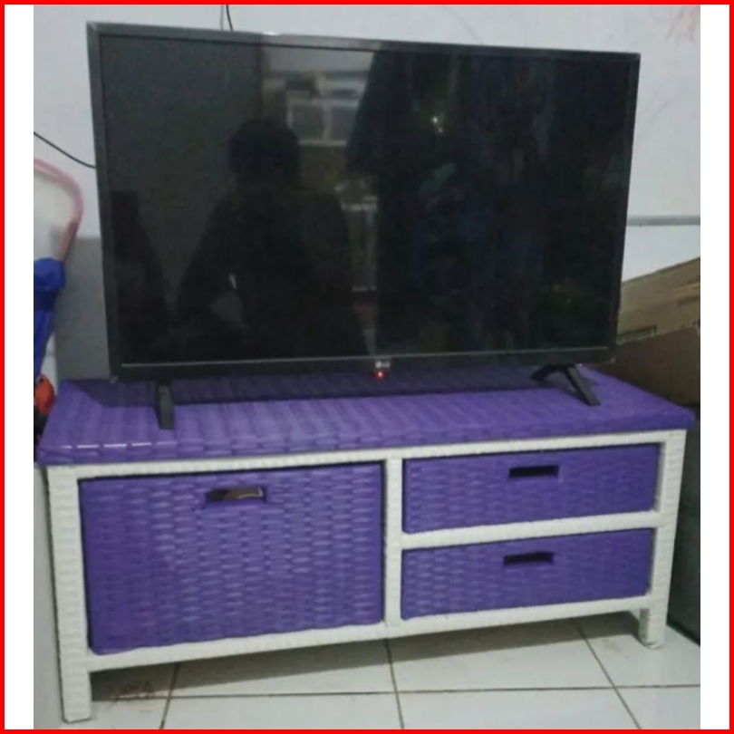 Meja Tv Rotan Sintetis Meja Rak Laci 3 Serbaguna