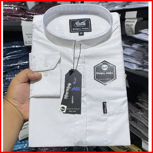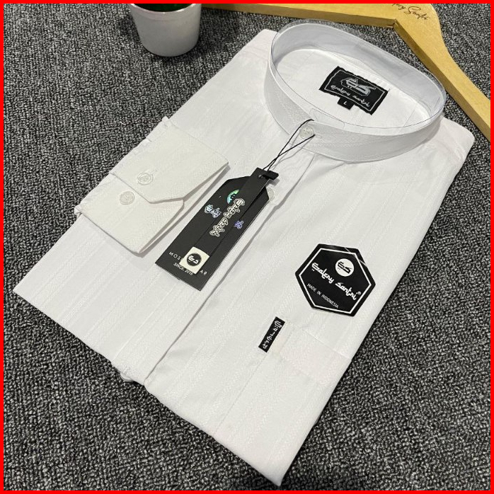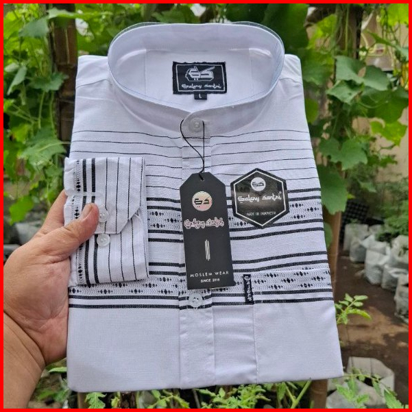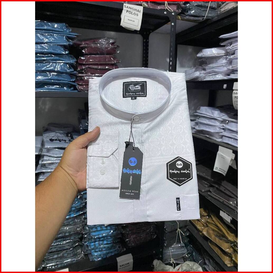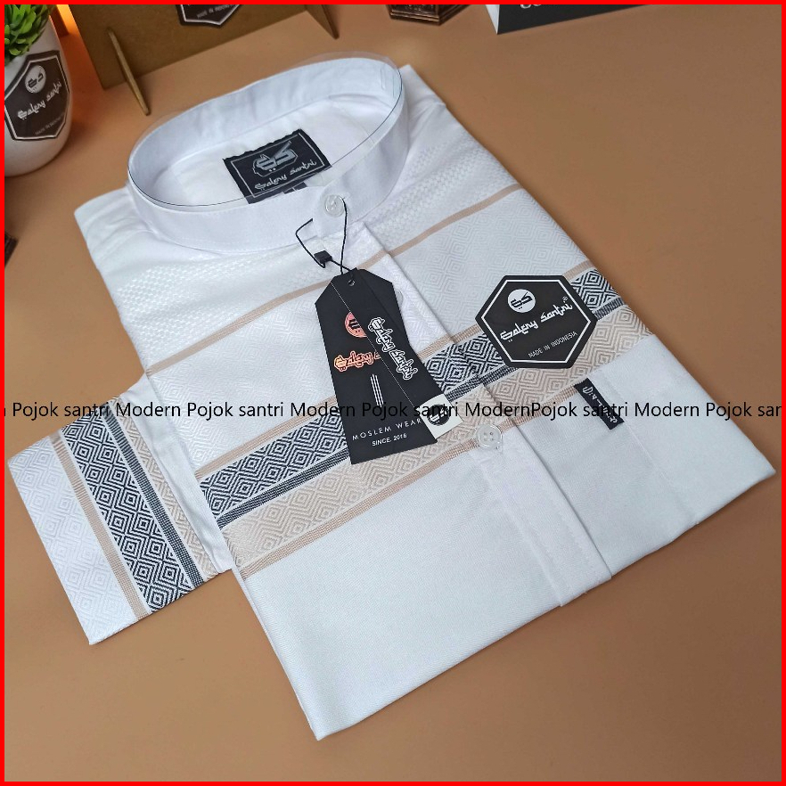 Galery Santri Baju Koko Pria Dewasa Lengan Panjang Katun Madinah Songket Putih