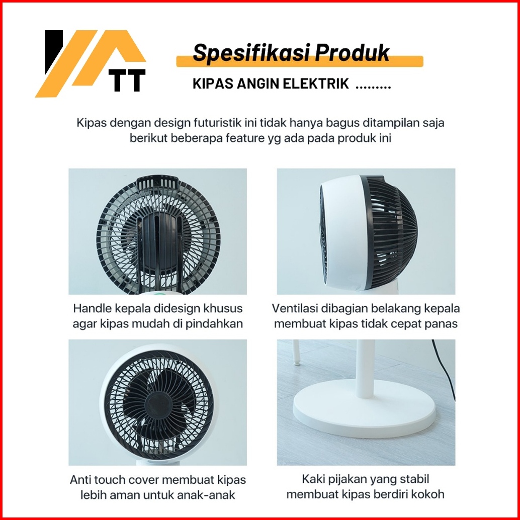 Yatt Kipas Angin Berdiri Listrik Premium Low Noise 3 Tingkat Kecepatan Angin Stand Fan Elektric