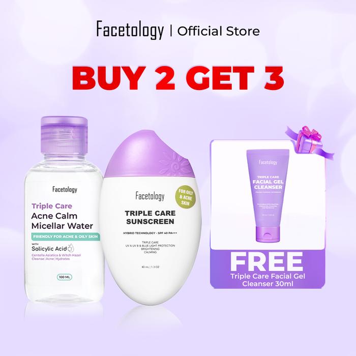 Facetology Triple Care Micellar Water 100 Ml + Triple Care Sunscreen Spf 40 Pa+++ 40Ml - Perawatan, Membersi