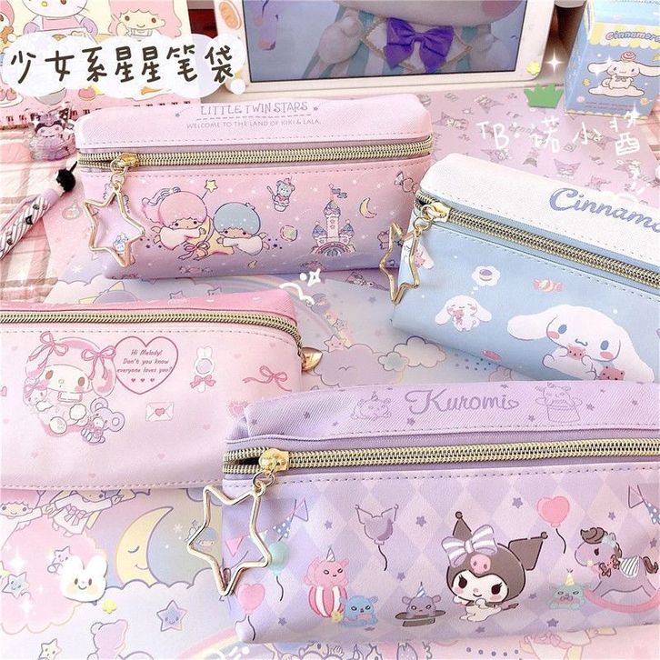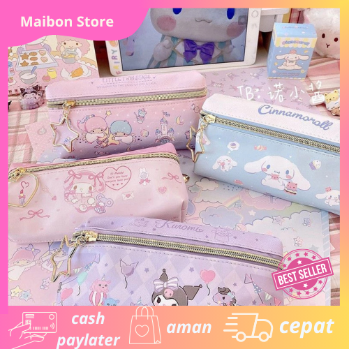 tempat pensil terbaru 2 sisi kotak pensil sanrio terbaru pencil case cinnamoroll kueomi melody 2 sekat Anak Perempuan