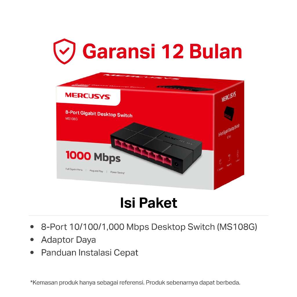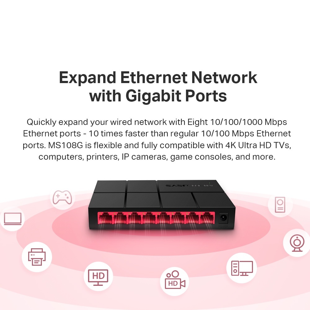 Mercusys | MS108G | 8-Port Gigabit Switch | 10/100/1000 Mbps | Desktop Network | Ethernet LAN | Hub