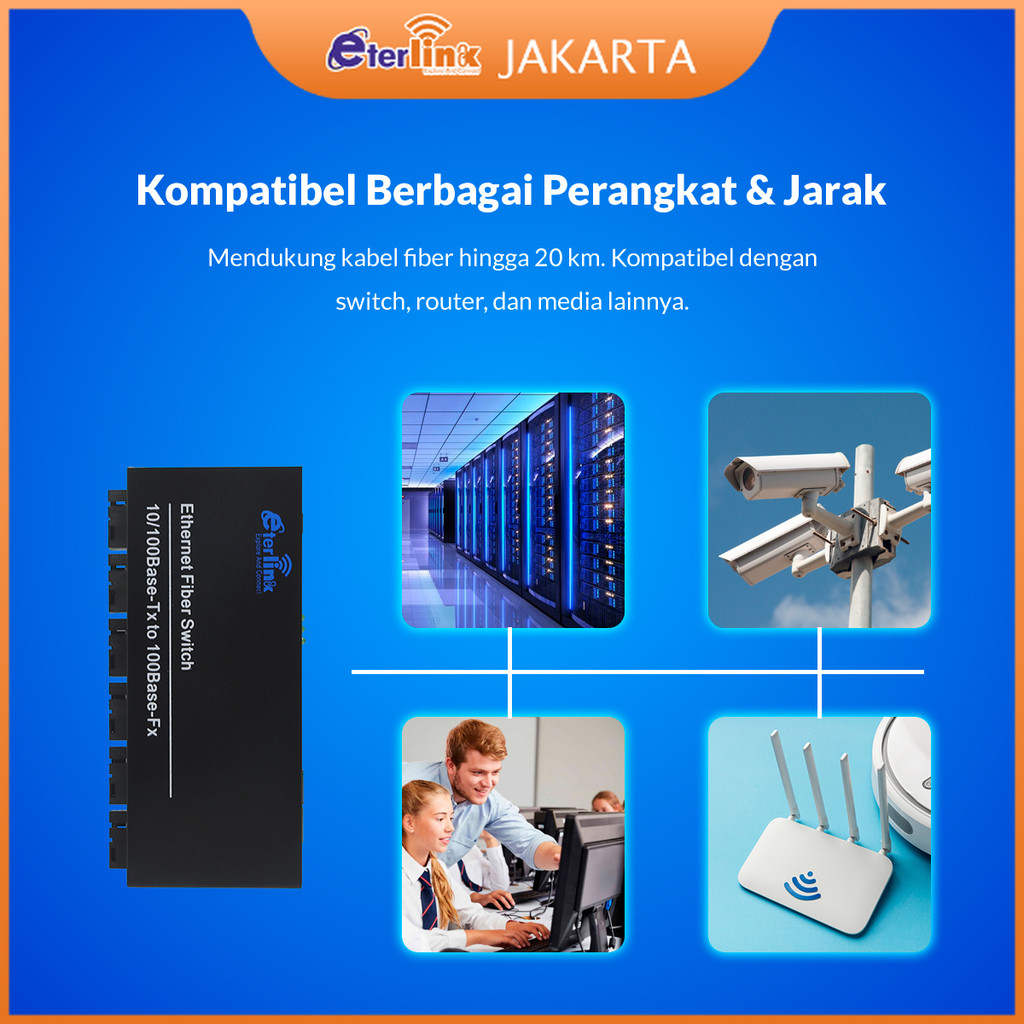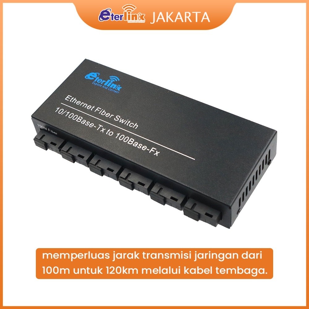 1 Pcs 100Mbps 6 port sc Fiber 2 port RJ45 Fiber Optic Ethernet Converter Dengan Adaptor 12V2A