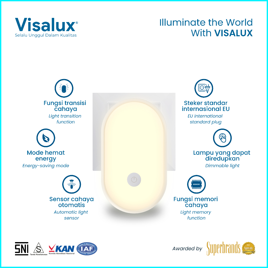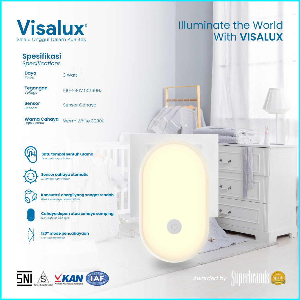 Visalux Lampu Tidur Led Night Light Front Light 3000k Warmwhite Kuning 3w Vlt303ww