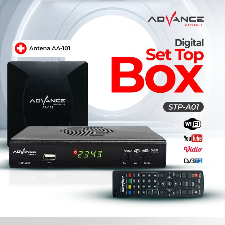 Set Top Box +Antena Digital DVB T2 HD EWS Receiver Penerima Siaran Bisa Youtube
