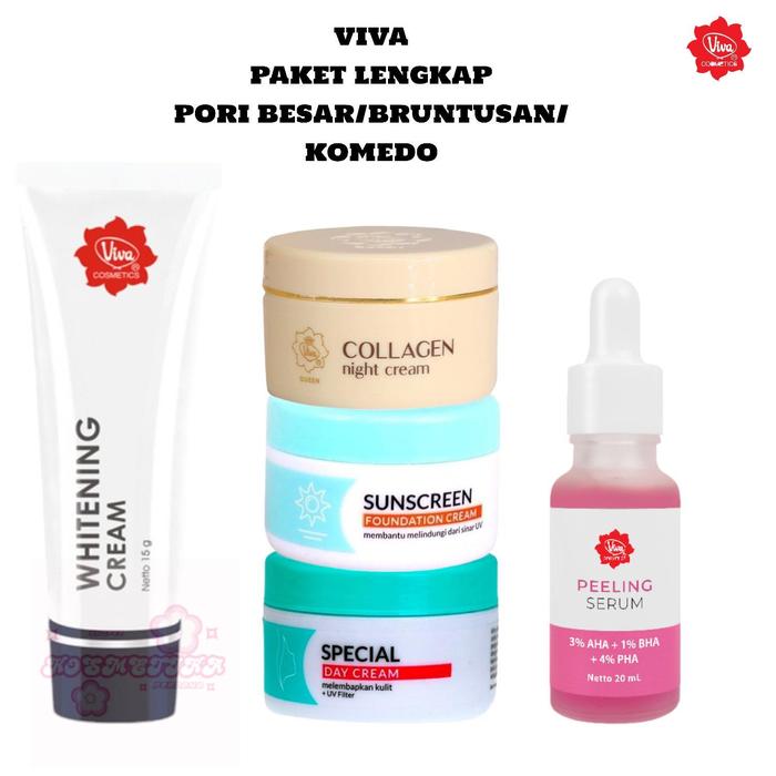 Viva Basic Paket Daily Perawatan Wajah 5 In 1 Dan 3 In 1 Untuk Anti-Aging Glowing Berjerawat Mencerahkan Kusam Isi 5Pcs