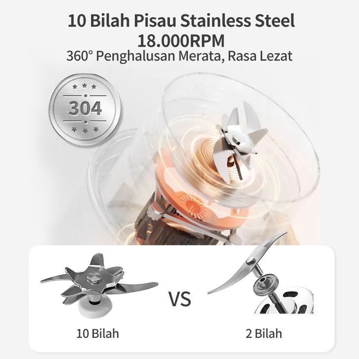 Juicer Portable Blender Cordless 340ml 10 Bilah baja tahan karat 304