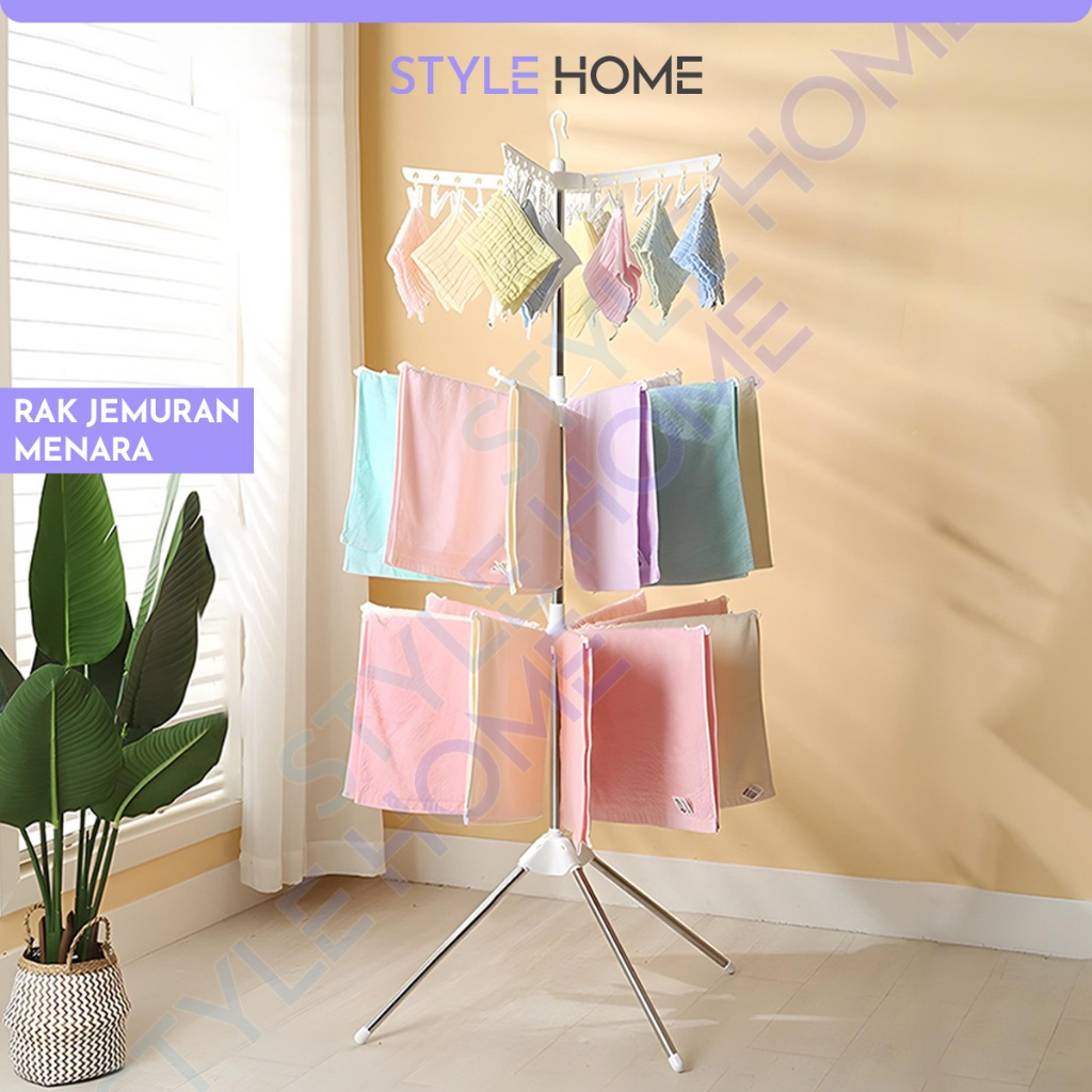 Stylehome Jemuran Menara Baju Anak 3 Tingkat 24 jepitan Gantungan Baju dan 16 Jari-jari MJJ-2