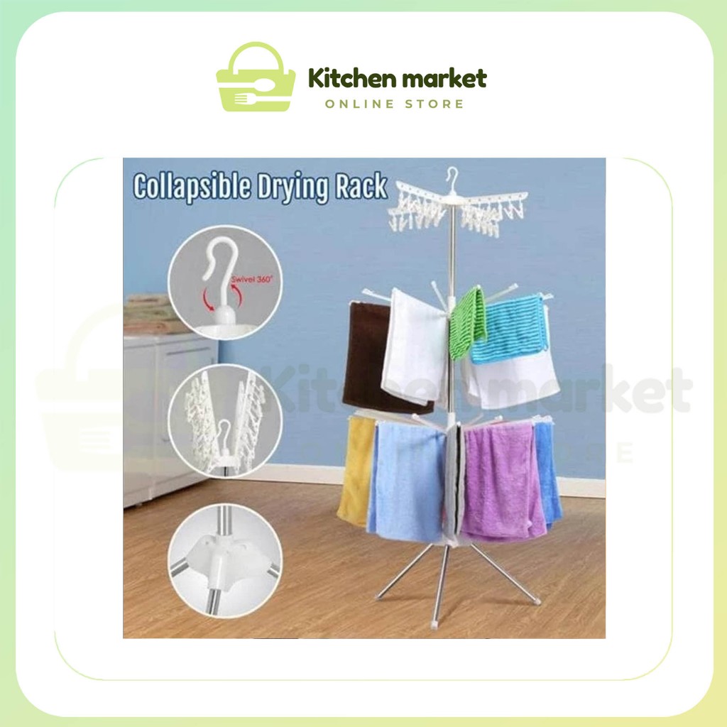 (KM) Jemuran menara rak jemuran baju bayi lipat rak susun handuk foldable hanger 10 jari-jari