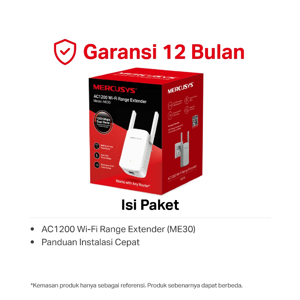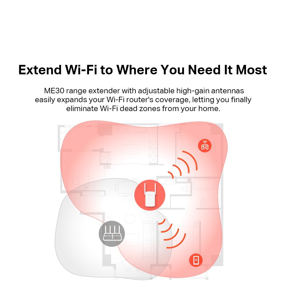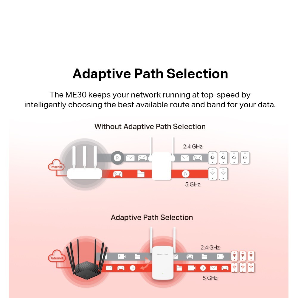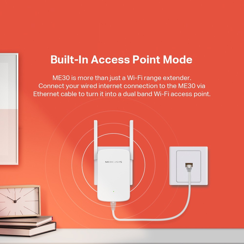 Mercusys | ME30 | AC1200 Wi-Fi Repeater | 2.4Ghz & 5Ghz Dual Band | Range Extender | AP Mode | IPTV