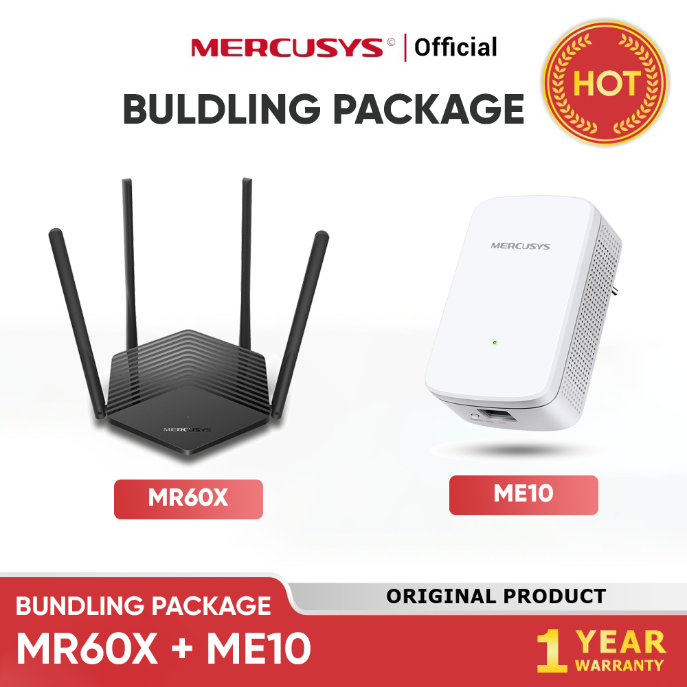 Mercusys PAKET SECURITY B MR60X + ME10 (AX1500 WiFi 6 Router + 300 Mbps Wi-Fi Range Extender) Powered By TP-Link