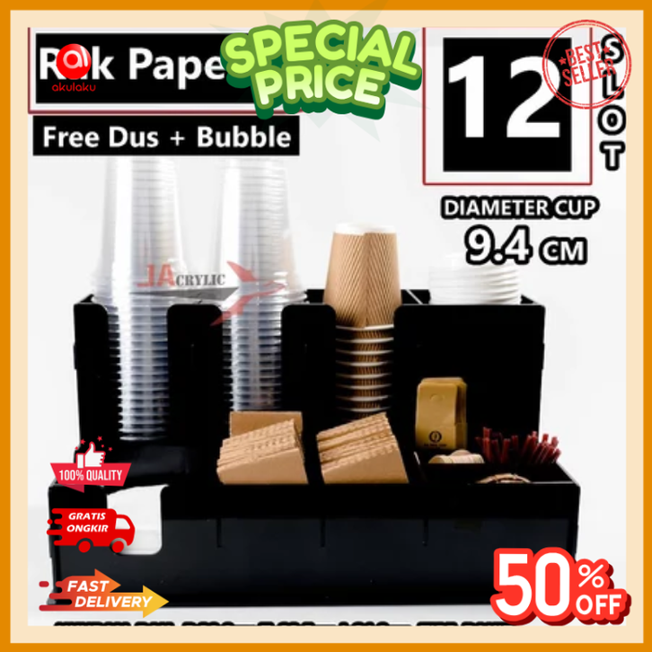 rak cup Rak Paper Cup Coffee Paper Cup Holder Organizer Akrilik 12 Slot Complete Tempat Cup terlaris