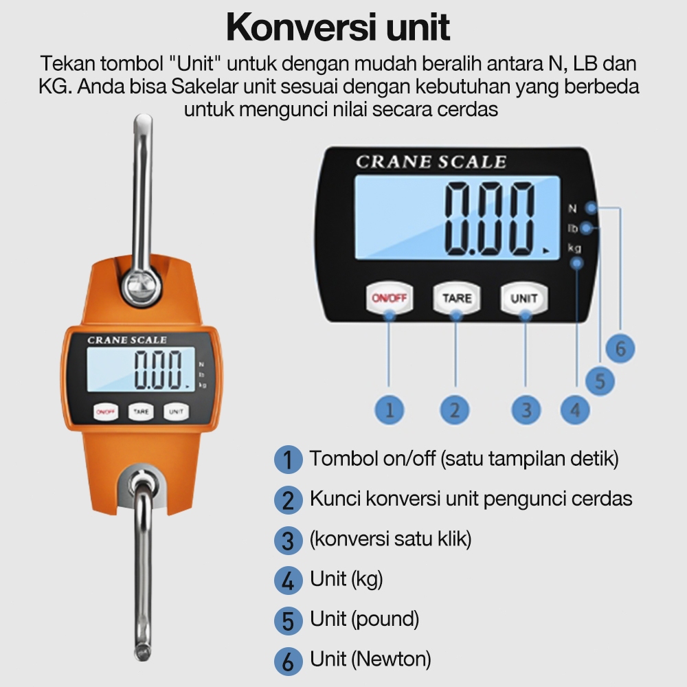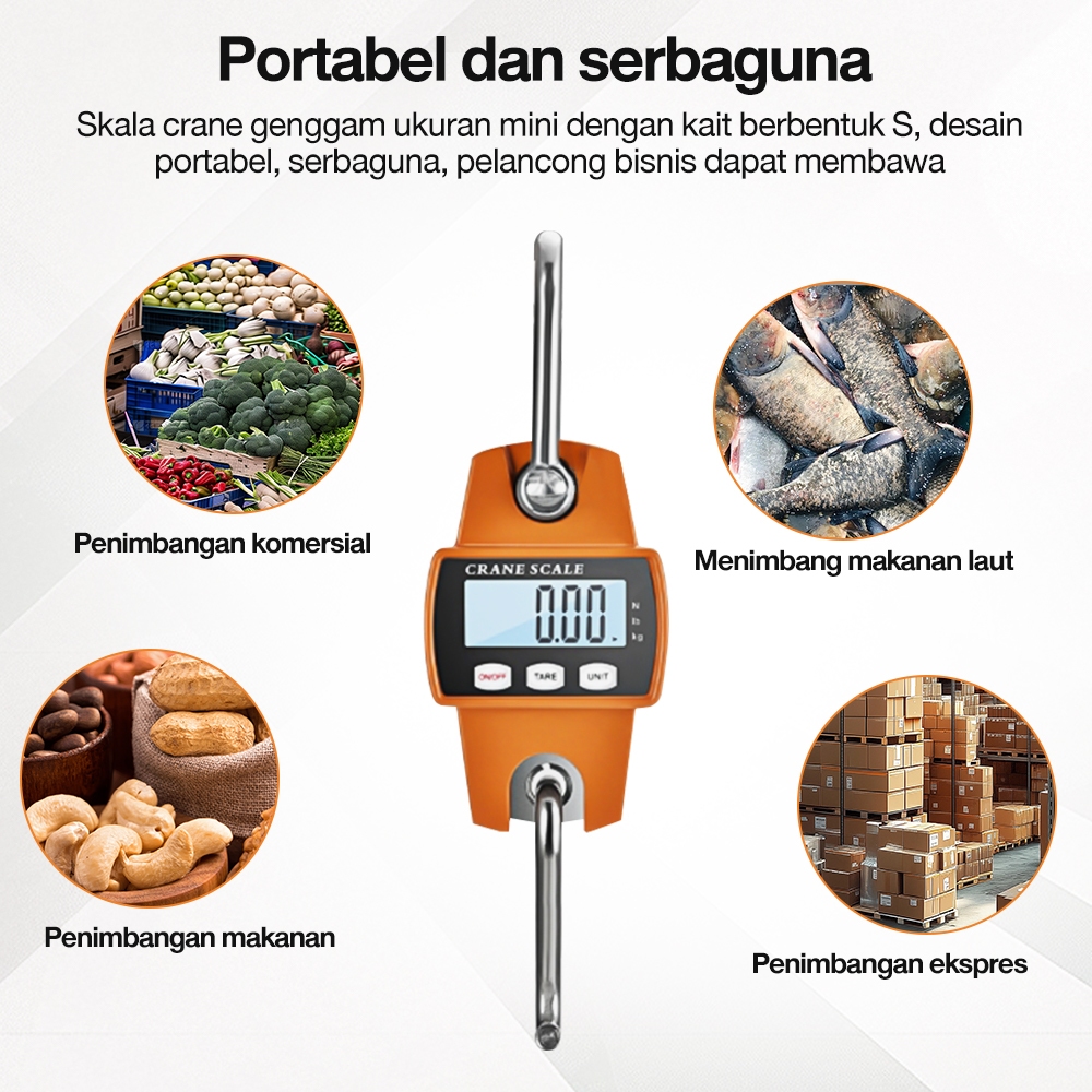 Timbangan Gantung Digital 300Kg Timbangan Gantung Digital 660LBS ORI Crane Scale Digital LED Orange LCD Smart Hook S