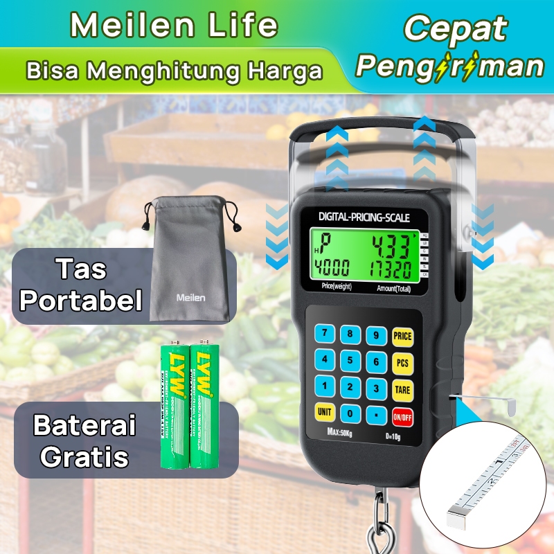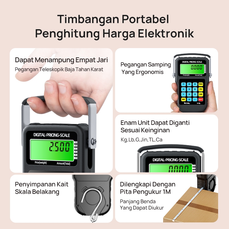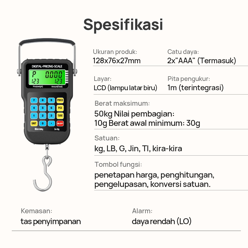 Timbangan portabel penghitung harga Timbangan Gantung 50Kg Timbangan Koper Digital Skala Bagasi Presisi Tinggi