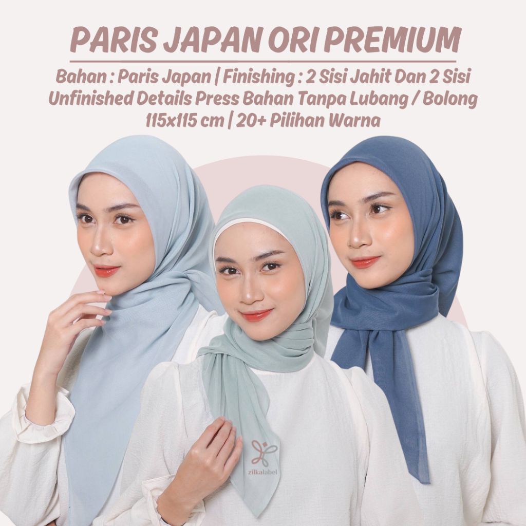 PARIS JAPAN ORI PREMIUM/Hijab paris jadul segi empat/Krudung Finishing Jahit Tepi/ Kerudung Untuk Kondangan Dan Acara Formal Lainnya / Jepang/