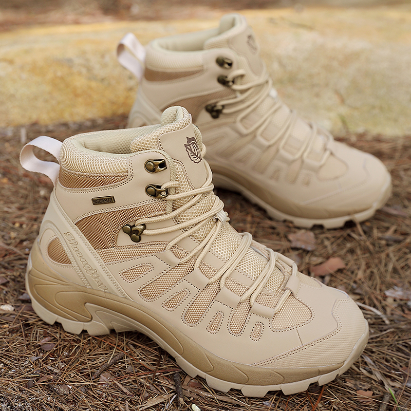 Sepatu ung Pria Outdoor #803 Beige Field Training Hiking Military Boots Hunting Trekking Camping Anti-Slip Combat Ankle