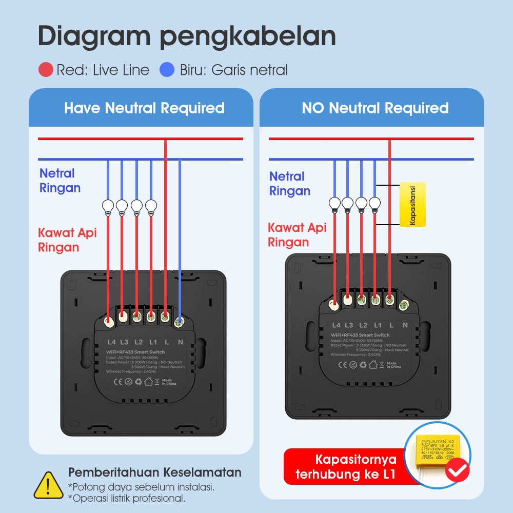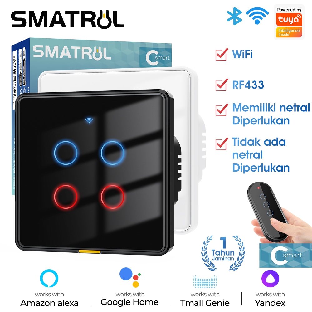 SMATRUL SMART WALL SWITCH EU 1/2/3/4 GANG WHITE/BLACK WIFI+RF433 Touch Wall Switch Saklar Sakelar Pintar