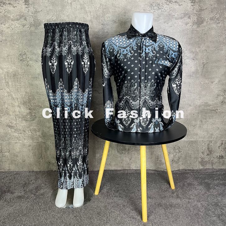 CLICK FASHION- BATIK COUPLE MODERN PASANGAN DAN ROK PLISKET BATIK COUPLE MOTIF TERBARU KENCANA
