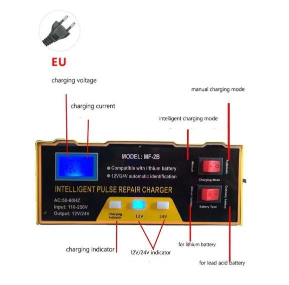 CHARGER AKI MOTOR MOBIL OTOMATIS SMART INTELLIGENT AUTO REPAIR MOBIL PENGISI DAYA 12V24V 400W 500AH